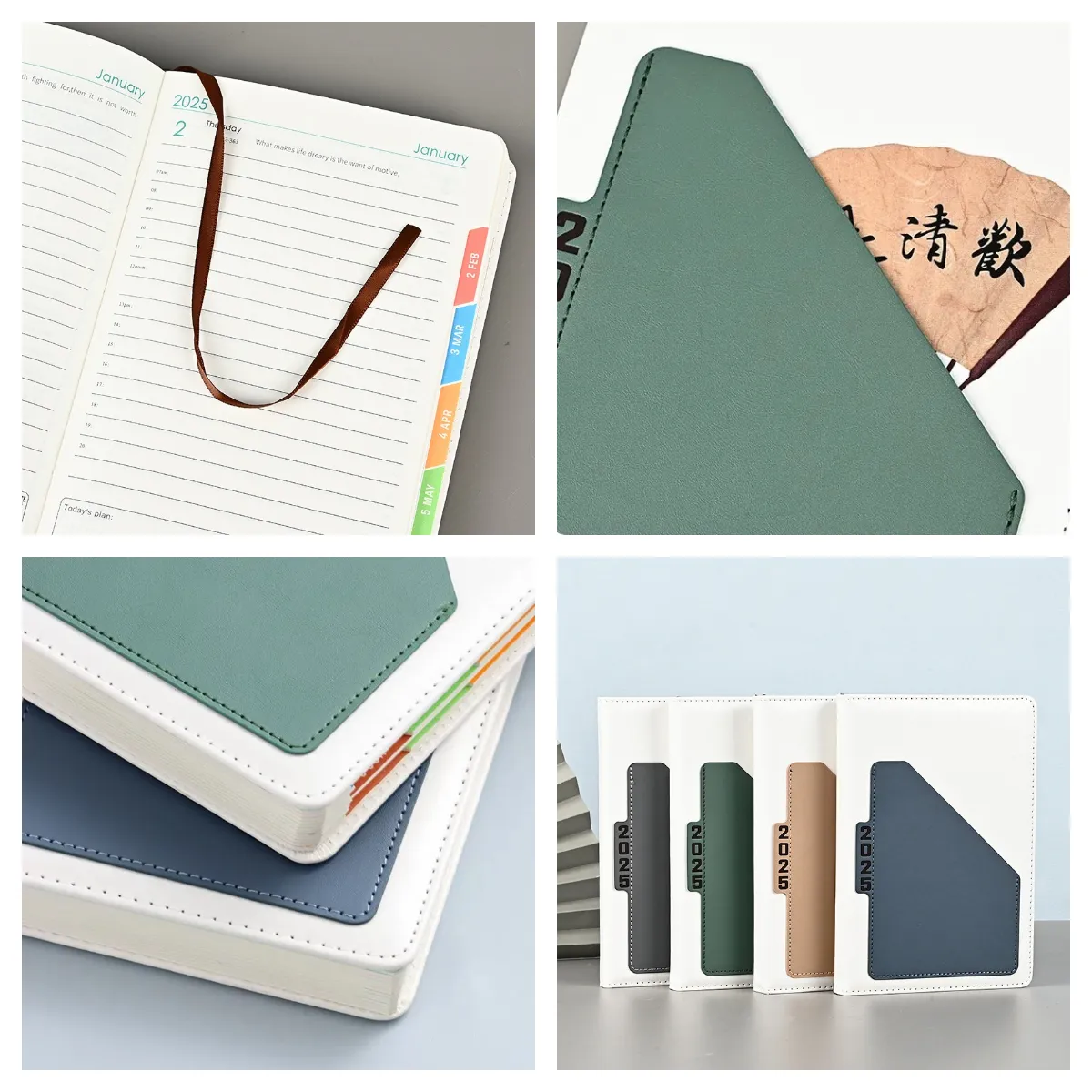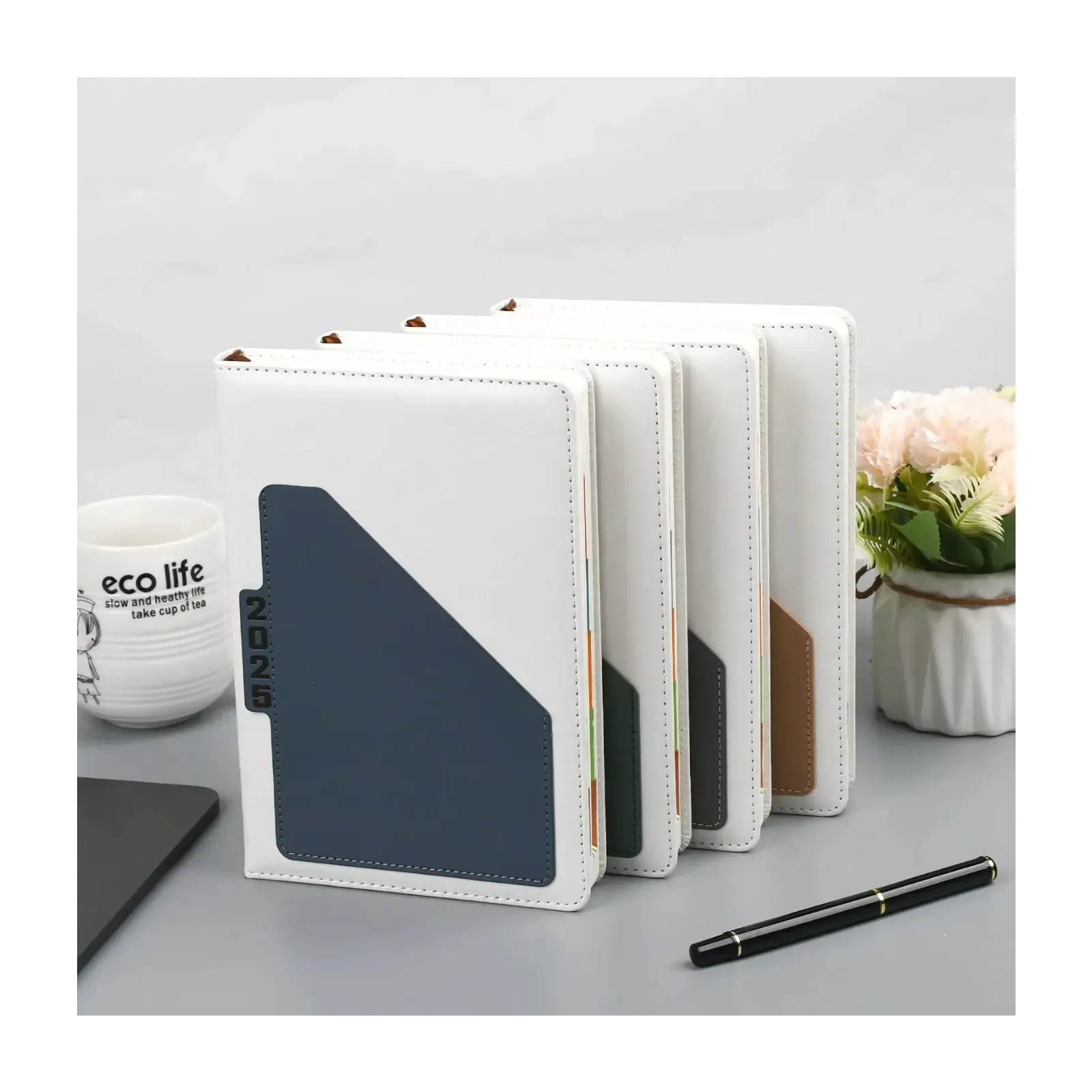 Custom Spanish English Calendar Notebook A5 Hardcover PU Cover Journal Agendas Notebook with Pocket